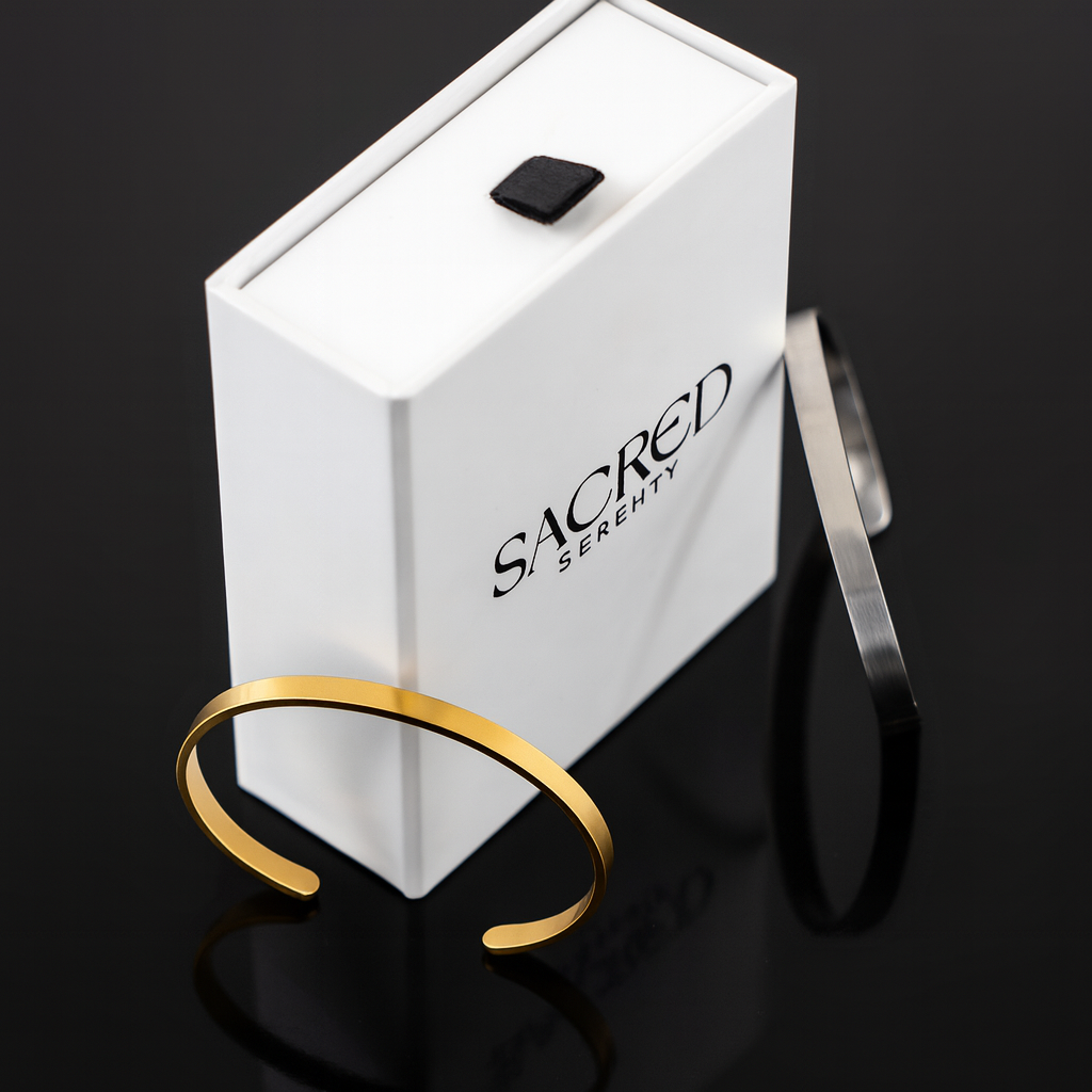 A matching duo set: two customizable Sacred Serenity bangles packaged together. Perfect for couples and gifts.